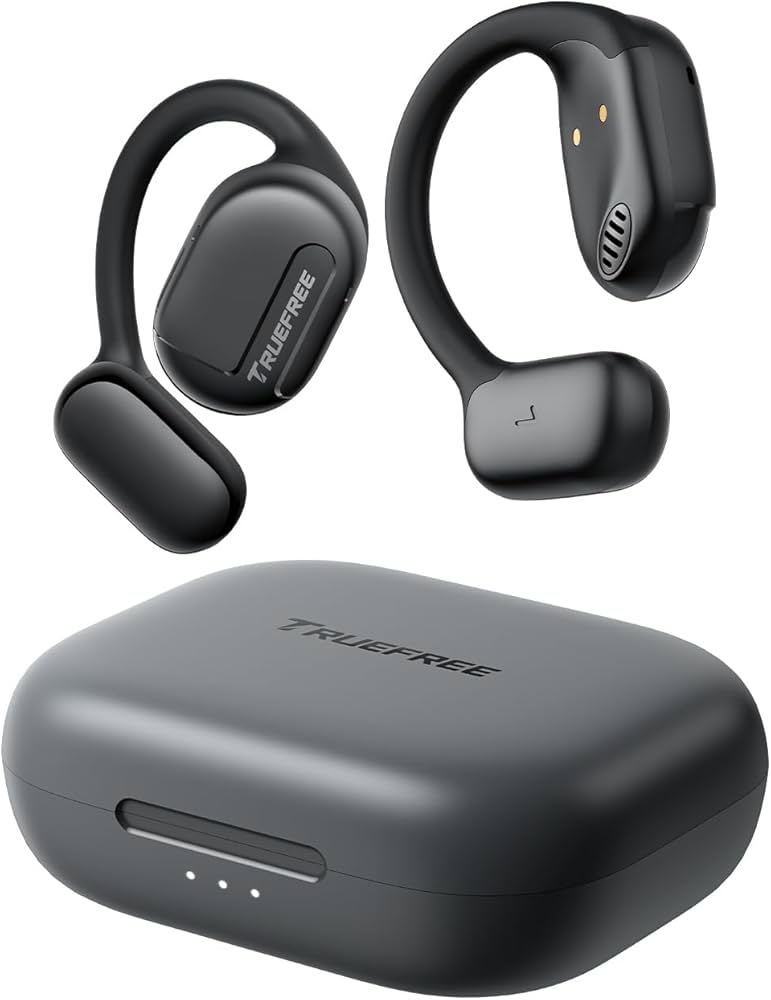 Truefree O1 open ear hoofdtelefoon, Bluetooth 5.3 draadloze oordopjes met oorhaken, over ear luchtgeleidingstechnologie voor sport, vier microfoons …